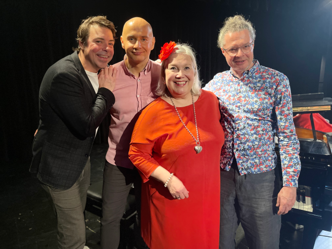 Tuija Komi hat kongeniale Musiker an ihrer Seite, die sie souverän aber einfühlsam als eingespieltes Trio begleiten: Martin Kolb (Schlagzeug & Perkussion), Peter Cudek (Kontrabass) und Stephan Weiser (Klavier).