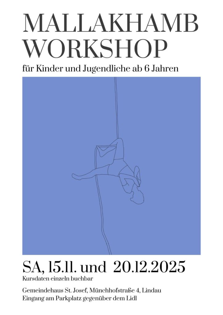 Mallakhamb ist eine Bewegungsschulung aus Indien, die von Ringern entwickelt wurde. Spielerisch werden Balance, Kraft, Ausdauer, Beweglichkeit, Geschicklichkeit, Flexibilität und Konzentration eingeübt. Yogahaltungen werden am Seil eingeübt. Am Ende jedes workshops findet eine kleine Vorführung für die Eltern und Geschwister statt.