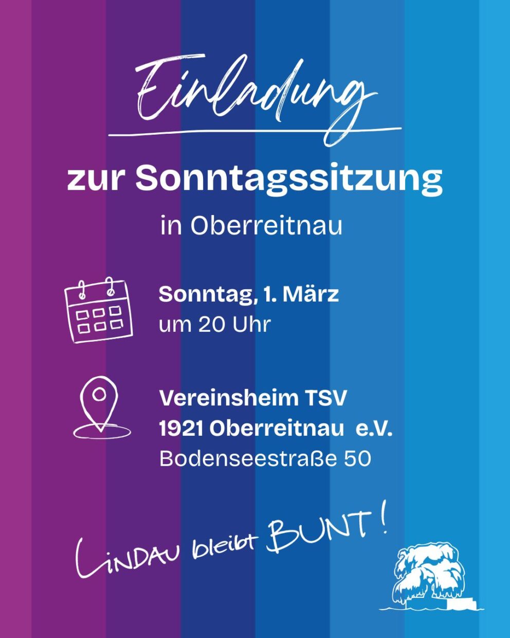 Am Sonntag, den 1. März 2026 um 20 Uhr nach Oberreitnau ins Vereinsheim am Sportplatz des TSV 1921 Oberreitnau e.V., Bodenseestraße 50