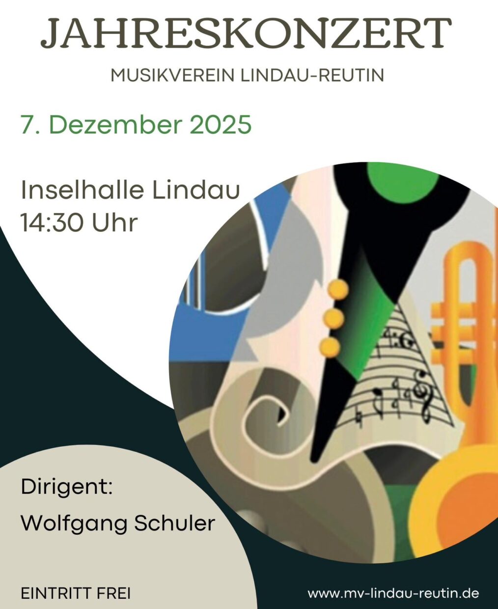 Am 2. Adventssonntag findet in der Inselhalle Lindau das traditionelle Jahreskonzert des Musikvereins Lindau- Reutin statt. Einlass ist ab 14 Uhr, Konzertbeginn 14:30 Uhr. Der Eintritt ist frei, wir freuen uns über Ihre Spenden.