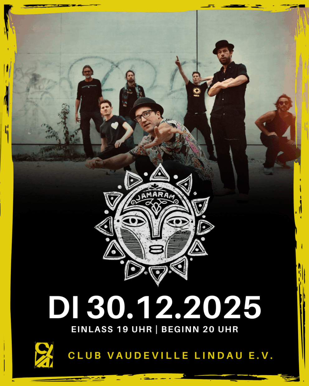 Wer den Jahresausklang mit einem echten Feuerwerk aus Reggae, Dub, Latin und Urban Grooves feiern will, sollte sich den 30. Dezember rot im Kalender markieren: Jamaram kommen nach Lindau! Die Münchner Ausnahmeband ist seit über zwei Jahrzehnten auf den Bühnen Europas unterwegs – immer mit im Gepäck: grenzenlose Spielfreude, tighte Bläsersätze, internationale Vibes und eine Message, die verbindet statt spaltet.