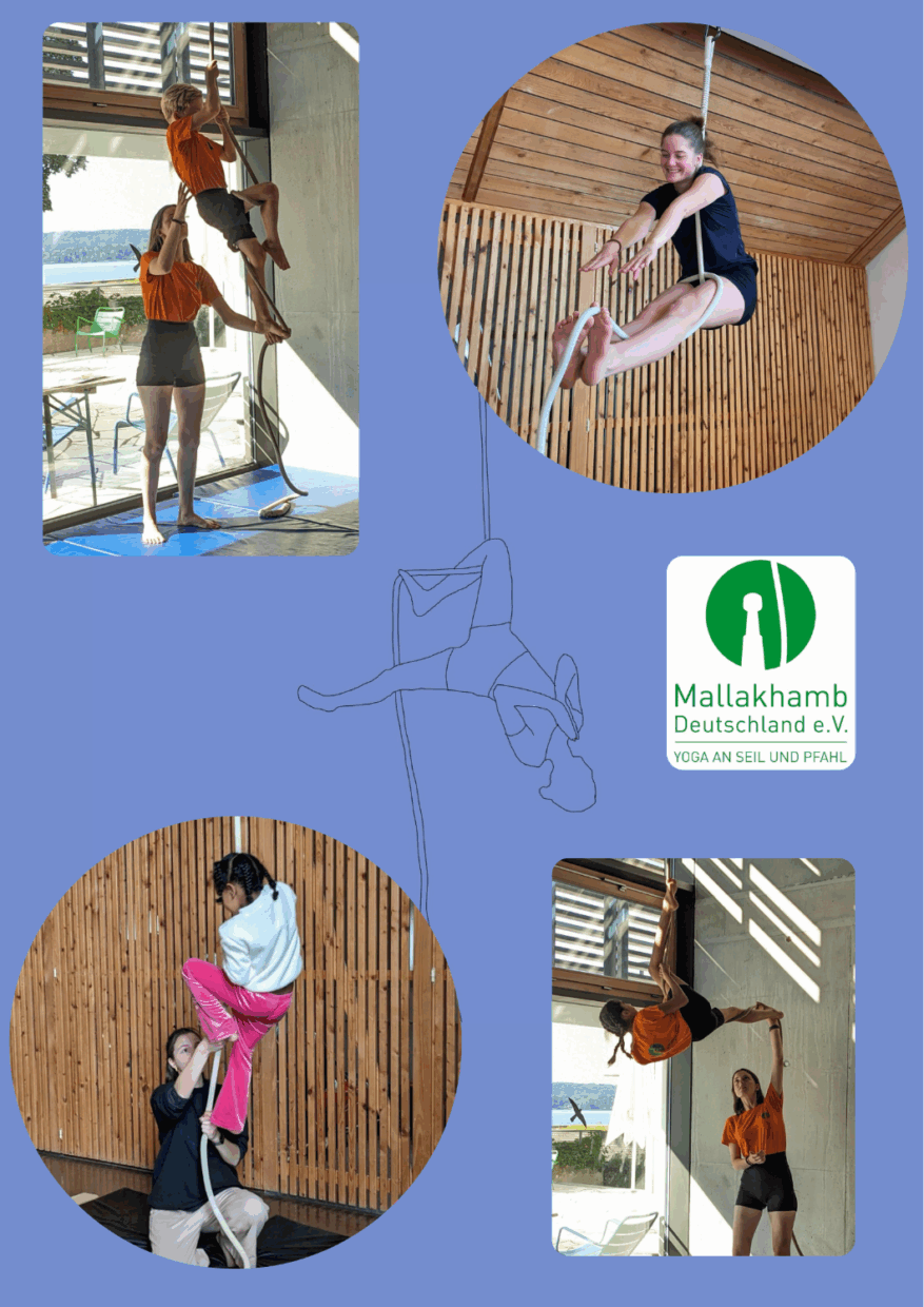 Mallakhamb ist eine traditionelle Bewegungsschulung aus Indien, ursprünglich aus dem Training von Ringern entwickelt. Spielerisch und dynamisch werden die Kinder an die Asanas des Yoga herangeführt. Im Mallakhamb lernen sie Konzentration, Ausdauer, Kraft, Flexibilität, Beweglichkeit, Balance und Geschicklichkeit. Begleitet werden die Haltungen durch Yogaübungen am Boden.