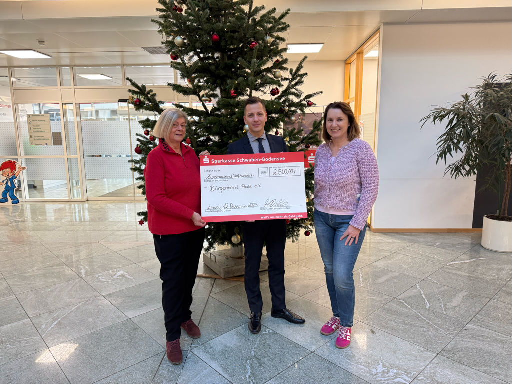Die Sparkasse Schwaben-Bodensee spendet 2500 Euro an den Verein Bürgermobil Paule. Mit der Spende soll der 2025 gegründete ehrenamtliche Fahrdienst…